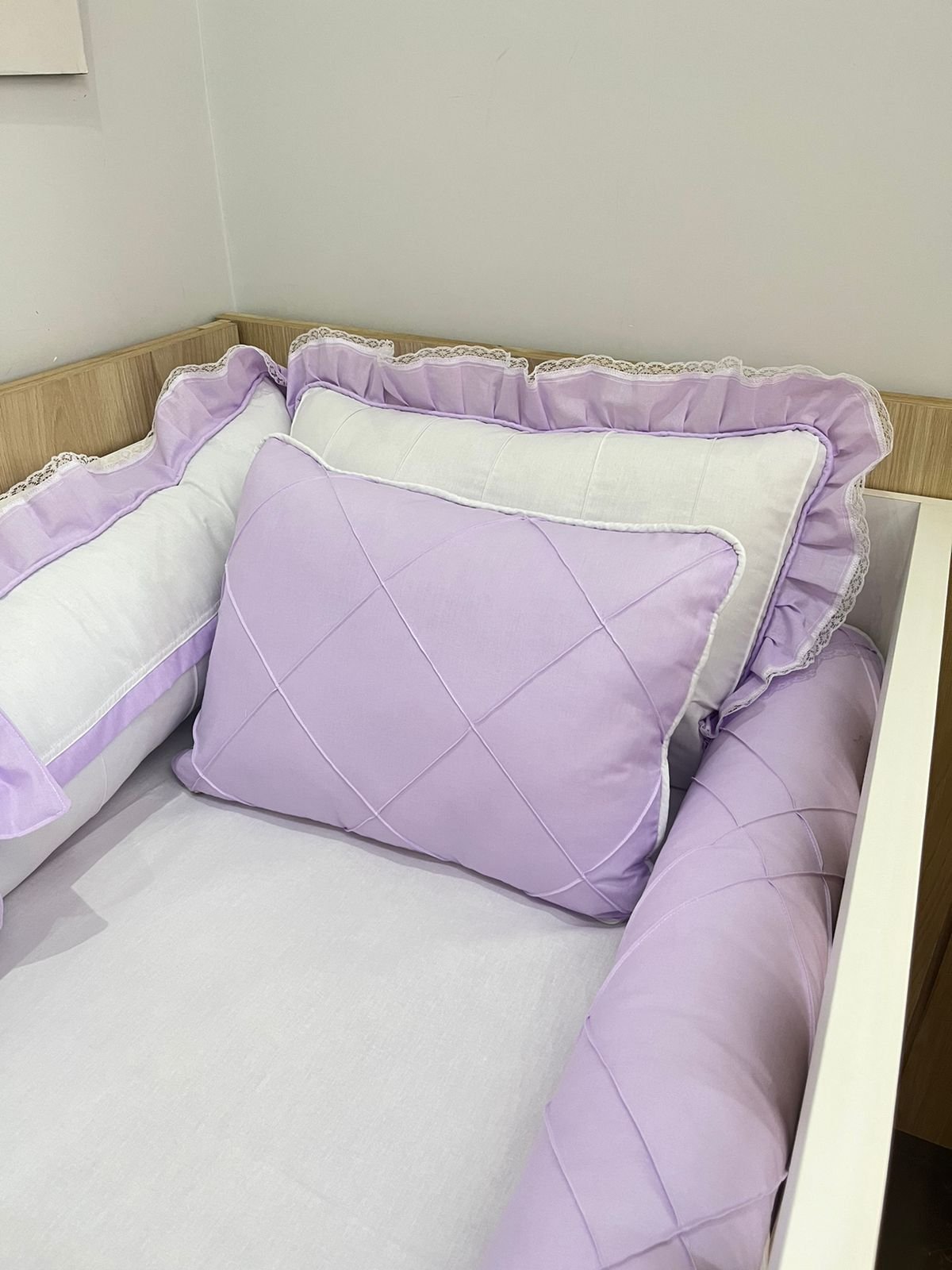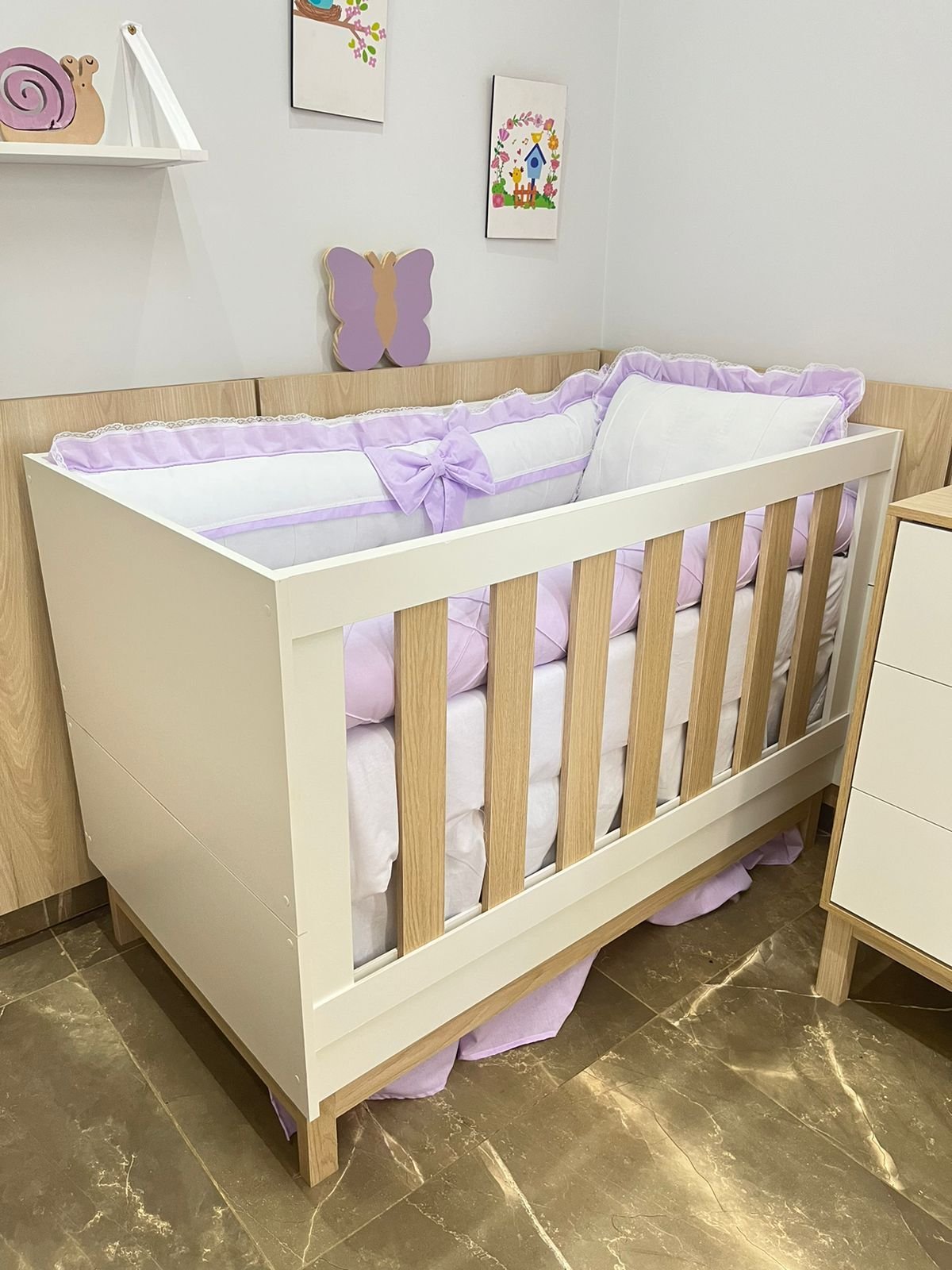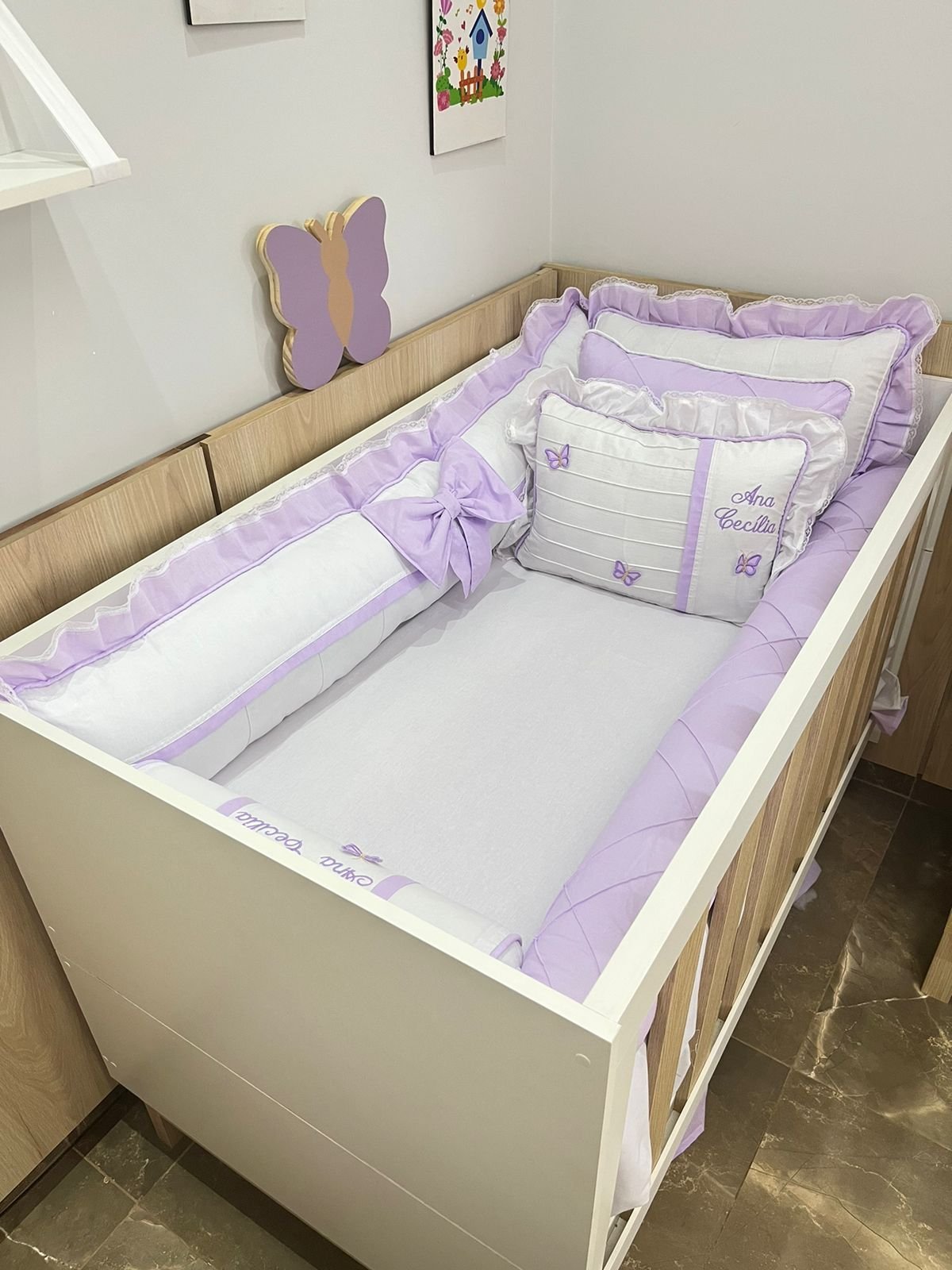 enxoval de berço borboleta lilás – 10 peças.
