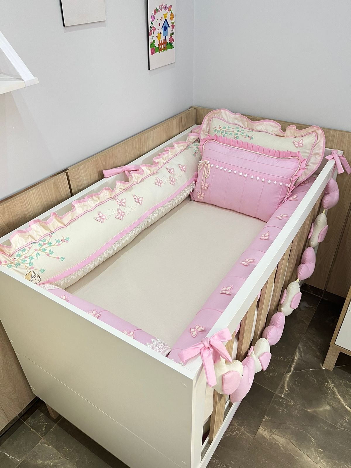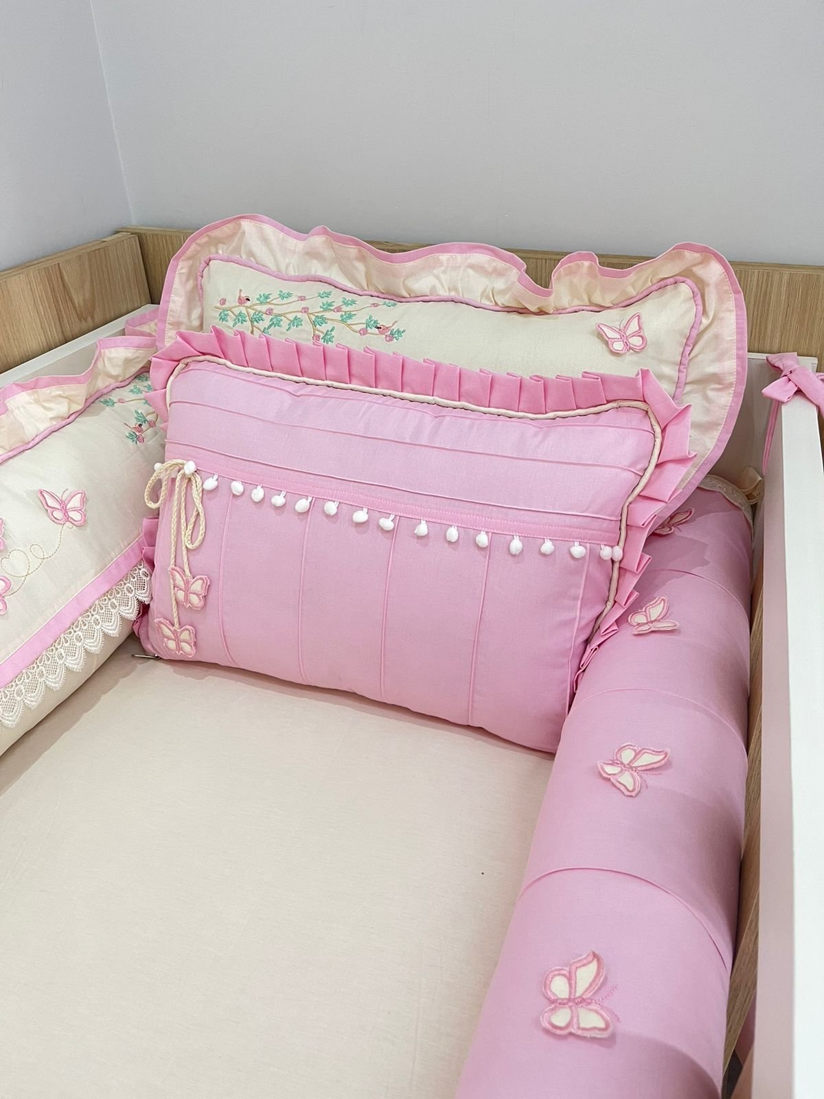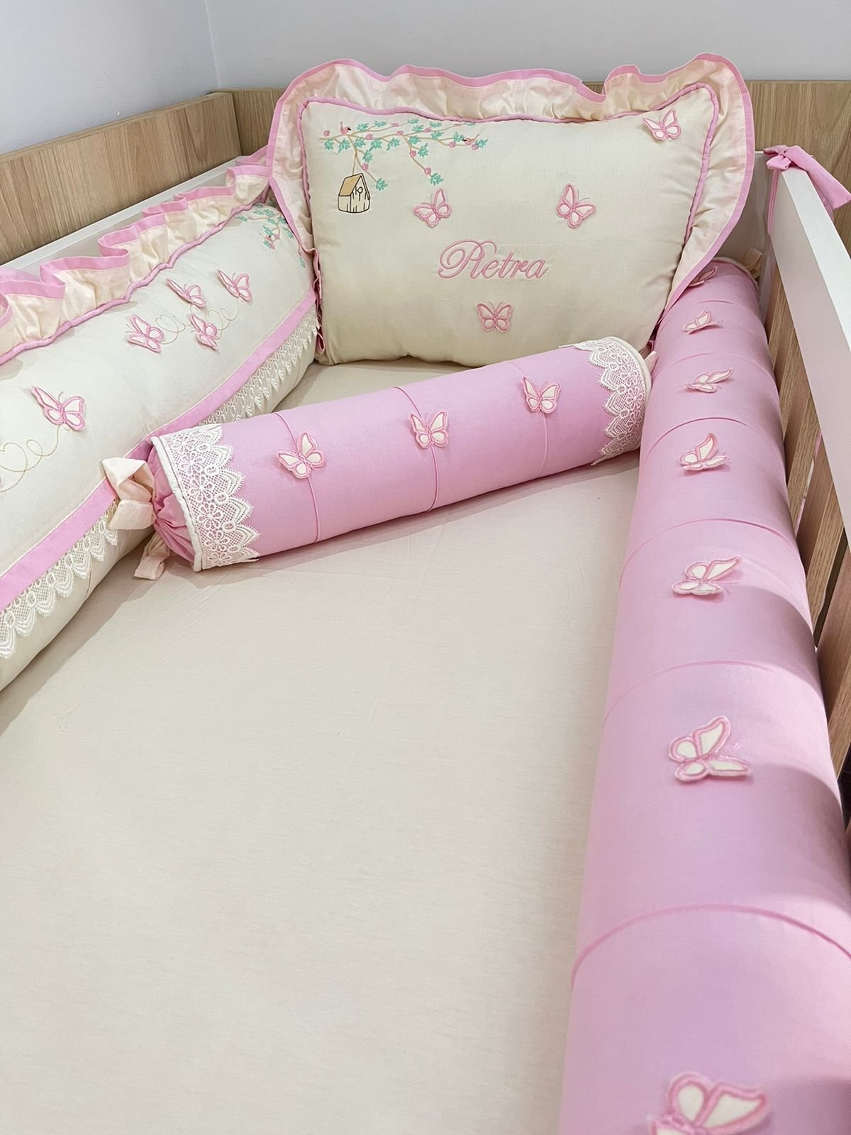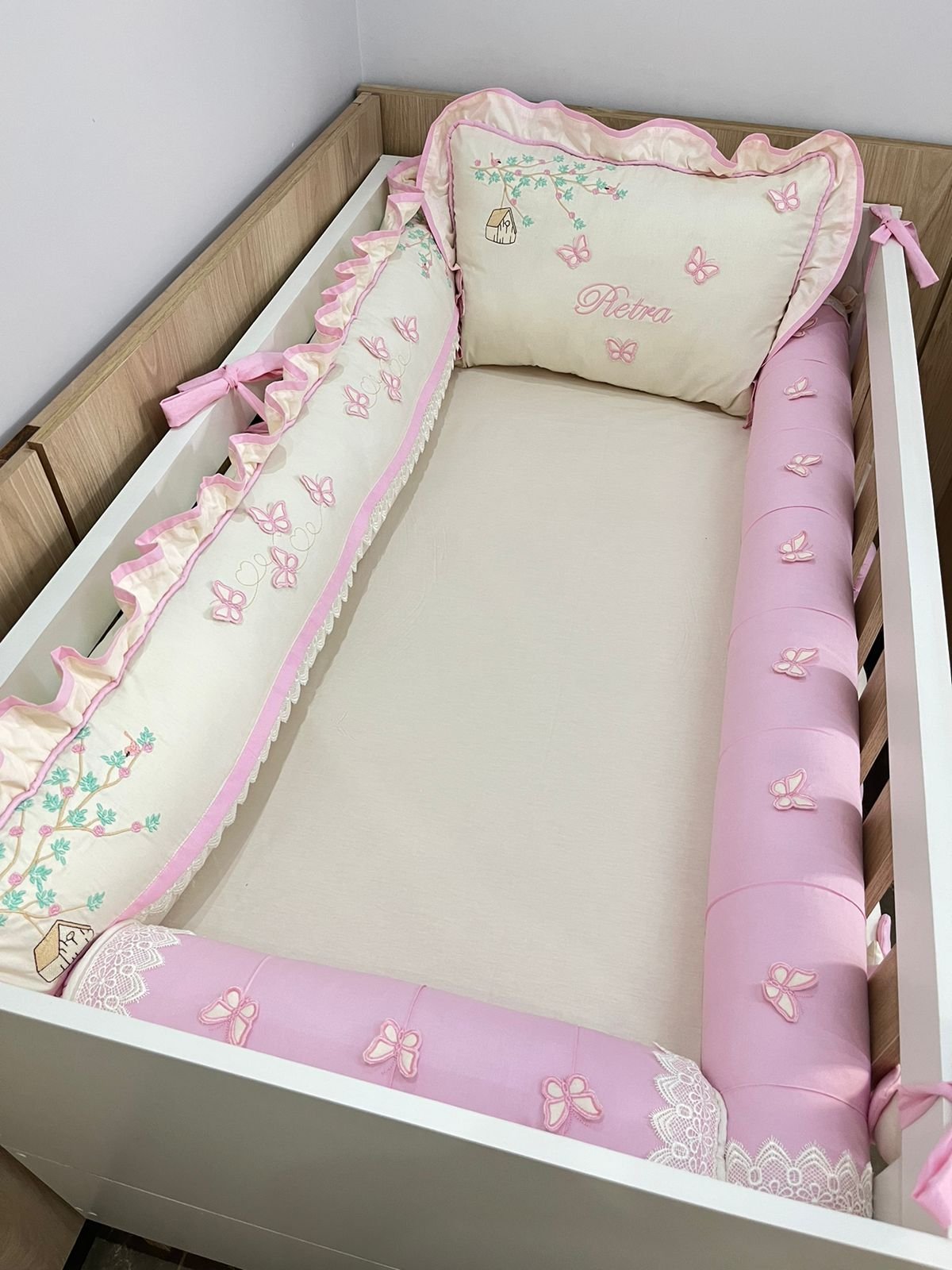 Enxoval de berço Jardim das borboletas rosa – 10 peças.