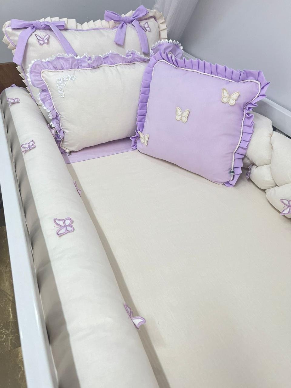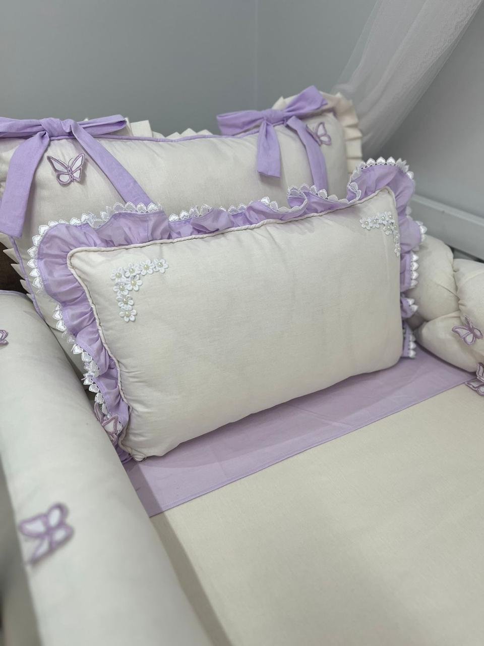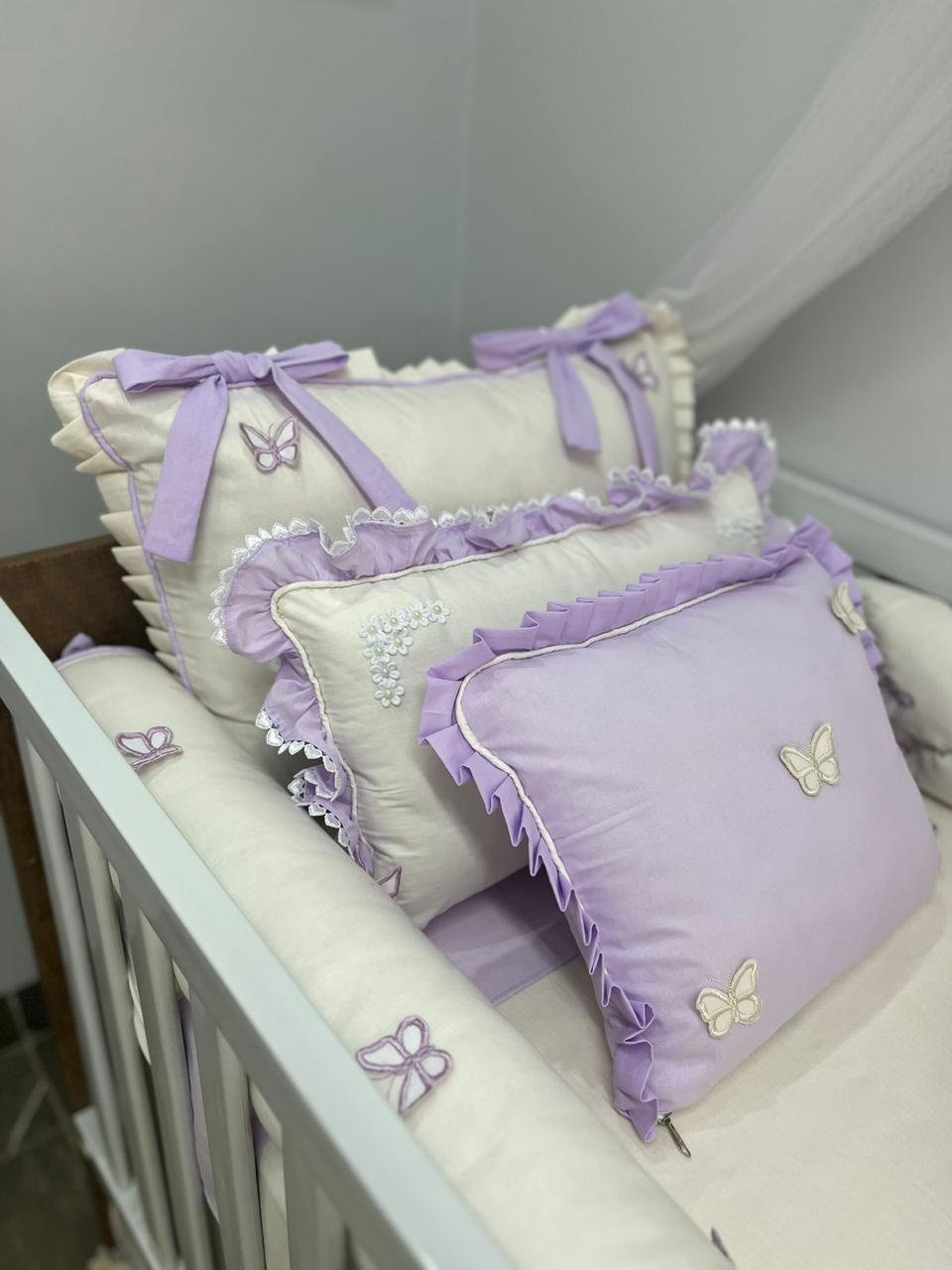 Em até 3x de R$4.400,00 sem juros À vistaR$13.197,00no PixEconomize R$3,00 no Pix Enxoval de berço jardim de borboletas lilás – com 9 peças