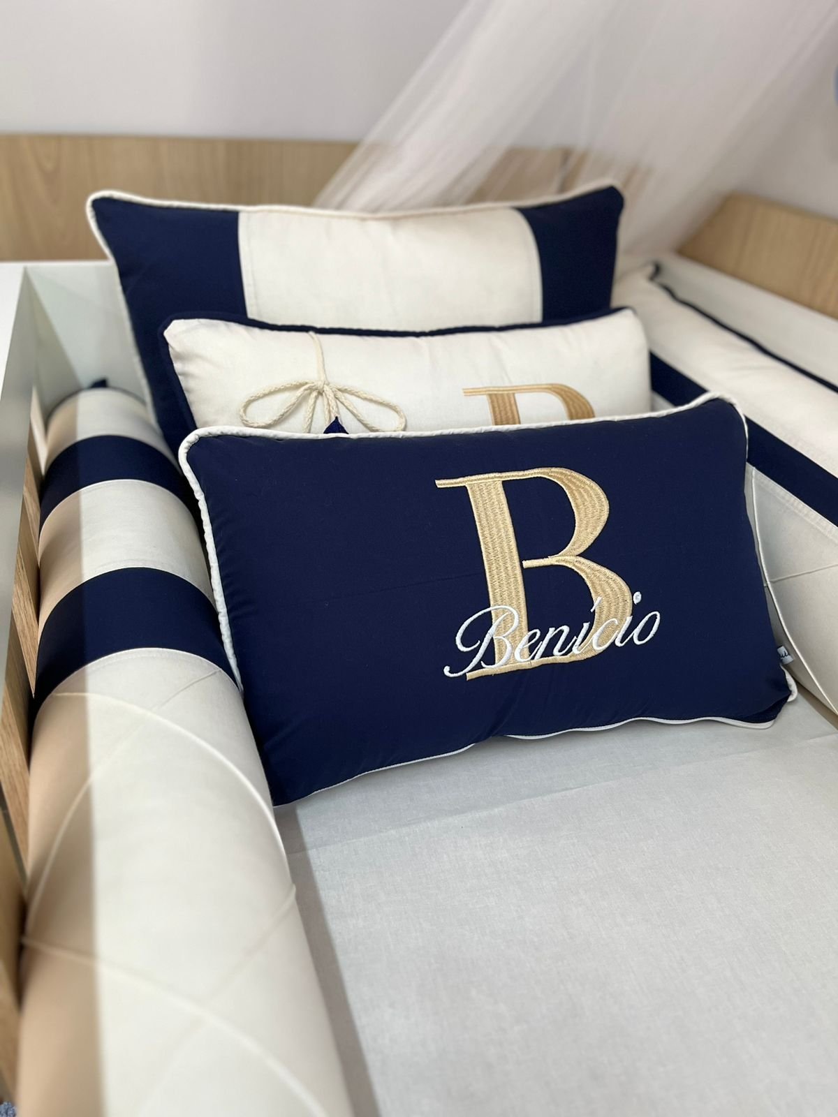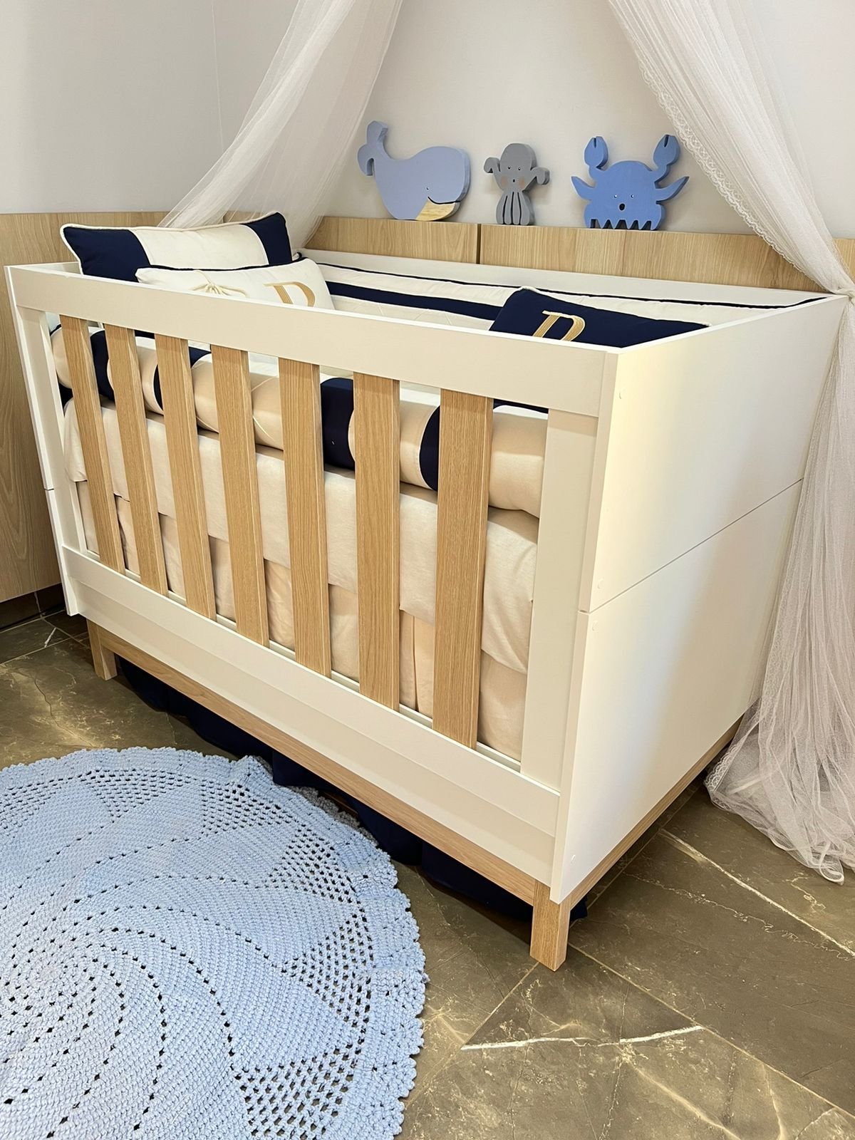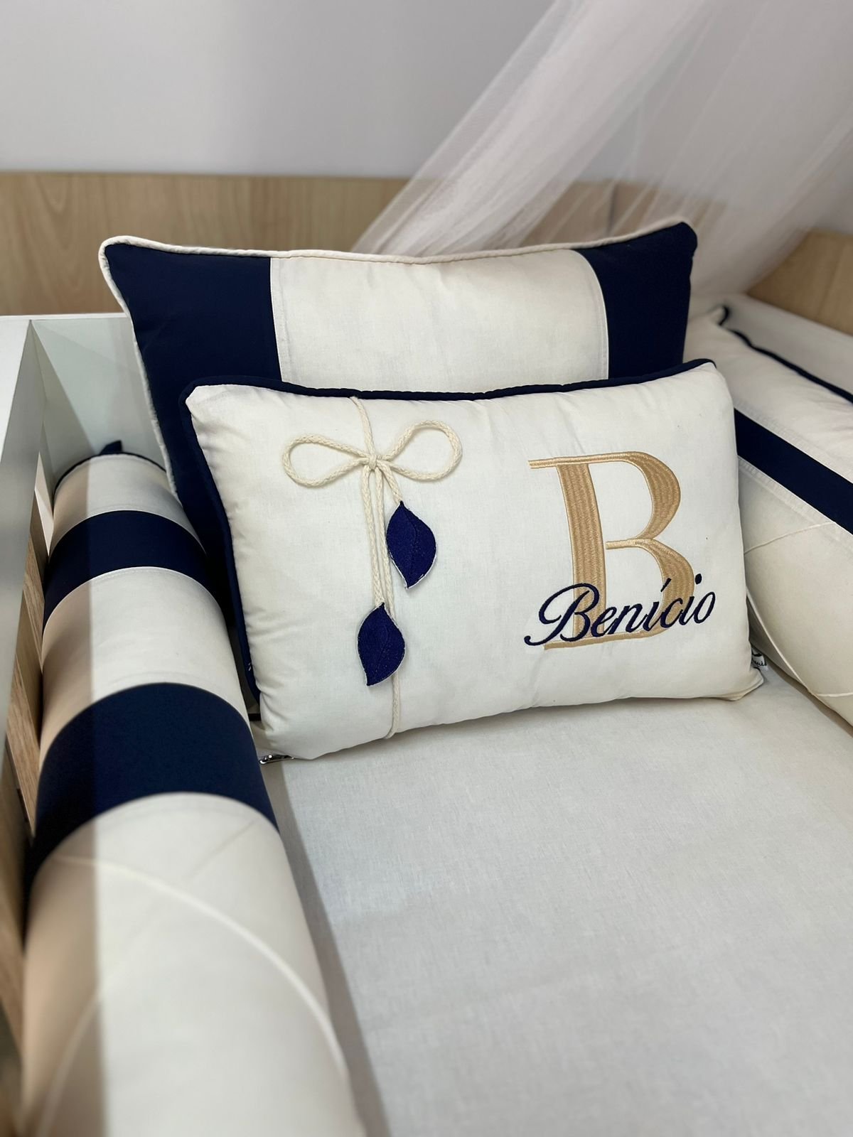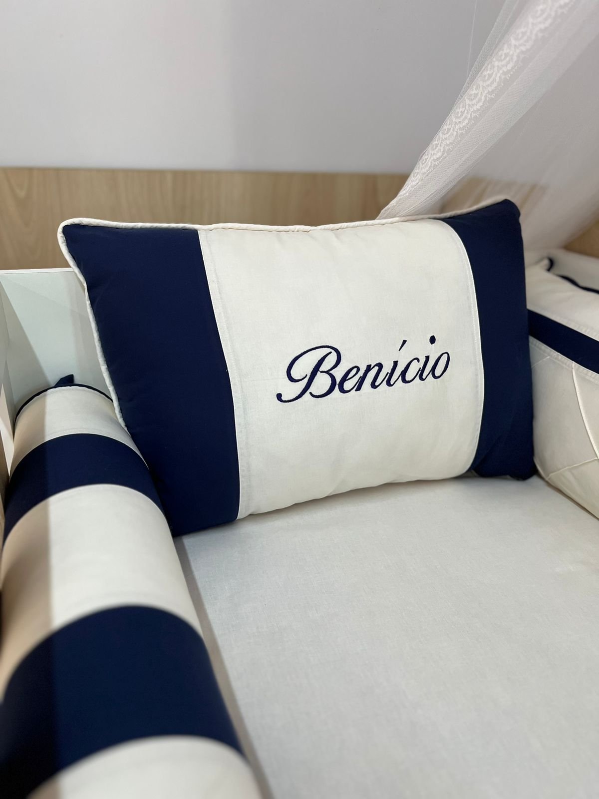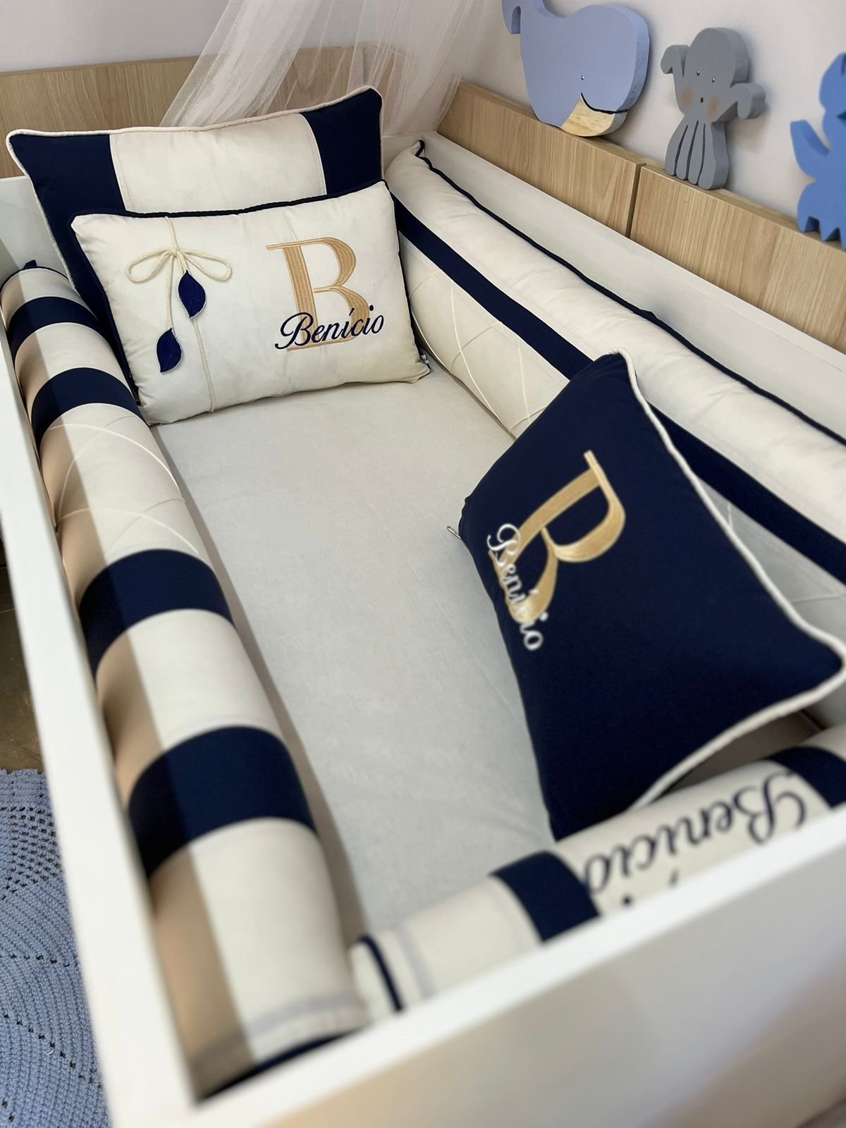 Em até 3x de R$4.400,00 sem juros À vistaR$13.197,00no PixEconomize R$3,00 no Pix Enxoval de berço off azul escuro – 10 peças
